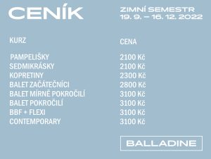 Ceník kurzů je platný pro lekce od 19. září do 16. prosince 2022.